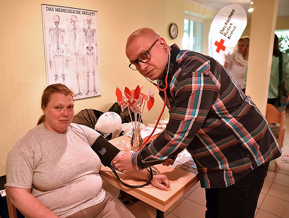Blutdruckmessung: Thomas Kohlschreiber, OP Pfleger und Frau Antje Zachariae
