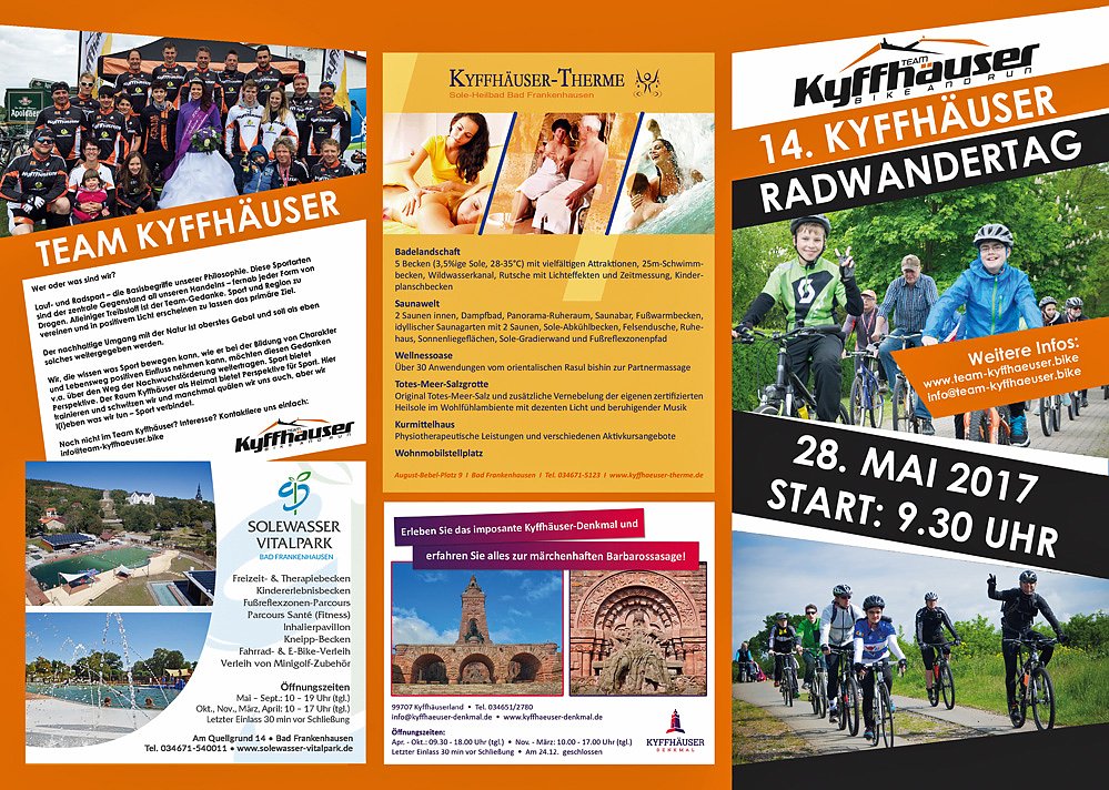 Dafür wollen wir uns alle am 28.05.2017 um 9:30 Uhr vor der Kyffhäuser Therme in Bad Frankenhausen zum Startschuss treffen. Die Anmeldung kann vor dem Start durchgeführt