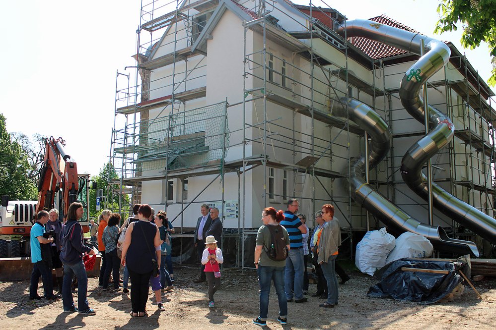 Am heutigen Samstag waren die Bürger um 11.00 Uhr an der KITA dabei, um Umbaumaßnahmen sowiesich über den Erweiterungsneubau der KITA Sonnenschein durch das Büro petermann.thiele.kochanek, Architekten und Ingenieure zu informieren.