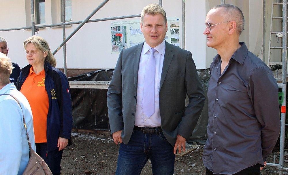 Als kompetente Gesprächspartner standen Bürgermeister Matthias Strejc (SPD) und Ludger Thiele vom Ingenierbüro zur Rede. Der Altbau wird mit 780.000 Euro modernisiert und der Anbau für die Kinder U3 für 1,35 Millionen Euro errichtet. Bei Maßnahmen werden zu zwei Drittel gefördert.