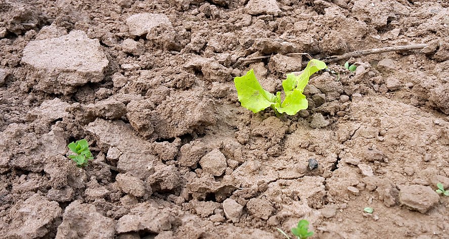 Aber es kam noch schlimmer. In zwei zeitlich gestaffelten Aussaaten kam gerade mal eine mickrige Pflanze zum Vorschein, die gerade mal an eine Schnittsalatpflanze erinnerte.