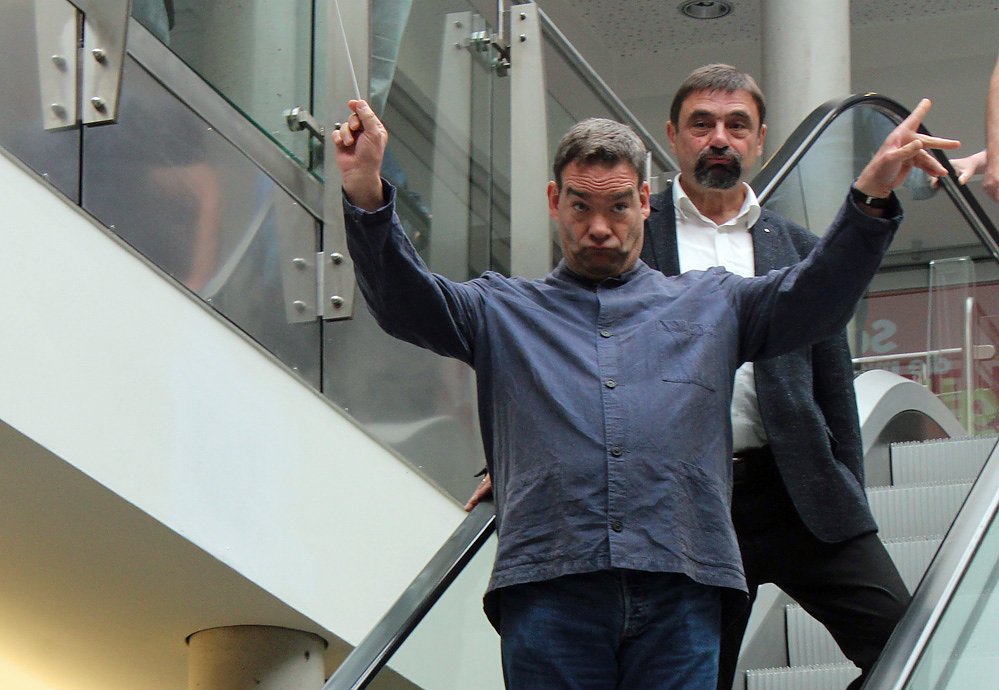 Auf der Rolltreppe schwebten gleich zwei Bürgermeister ein. Michael Tewes als Bürgermeister aus "Zar und Zimmermann" und Sondershausens Bürgermeister Joachim Kreyer.