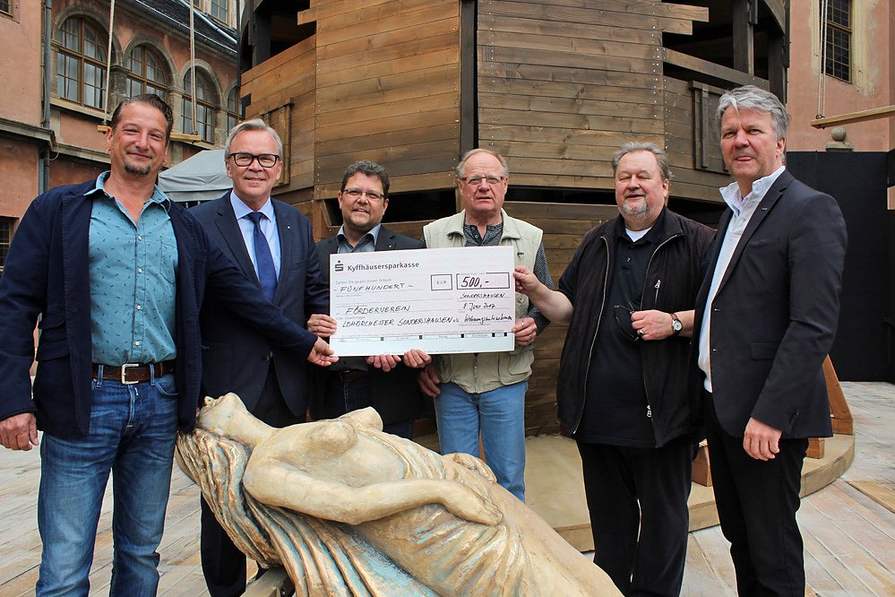 Heute kam es zur symbolischen Scheckübergabe an Wolfgang Wytrieckus, Vorsitzender des Fördervereins Loh-Orchester Sondershausen e. V., Michael Helmrath, Generalmusikdirektor der Theater Nordhausen / Loh-Orchester Sondershausen GmbH und den Intendanten der Theater Nordhausen / Loh-Orchster GmbH, Daniel Klajner.
