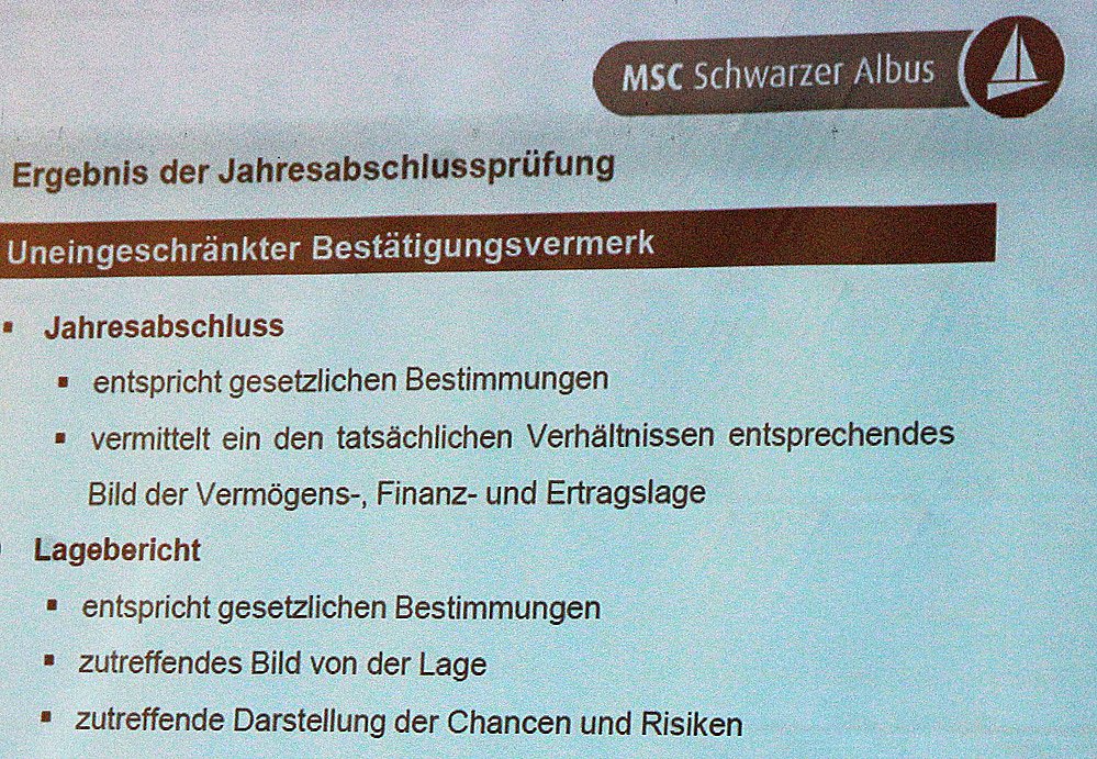 Die Wirtschaftsprüfergesellschaft MSC Schwarzer Albus zog eine positive Bilanz:
