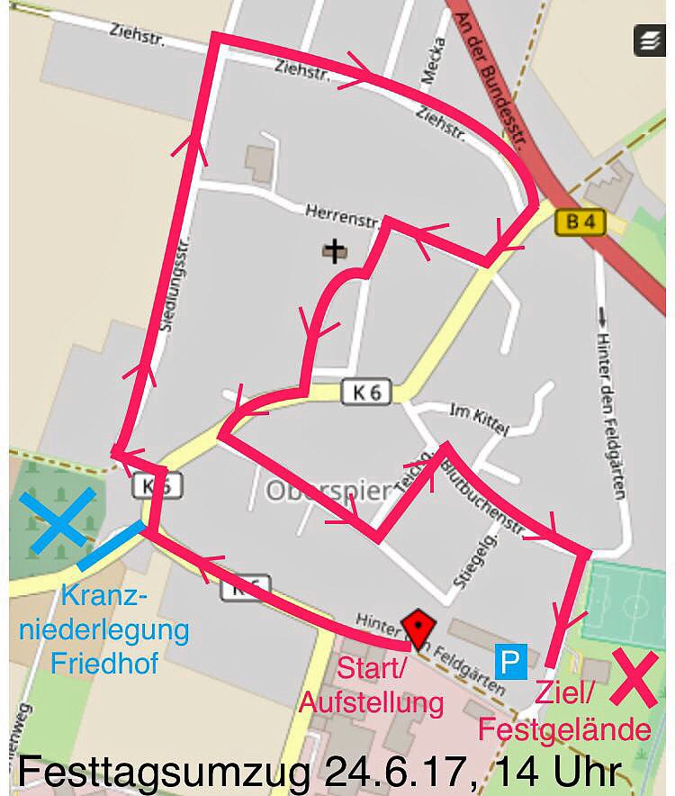 Am 24.06.2017 findet um 14 Uhr zum ersten Mal ein Festumzug der Vereine aus Oberspier, sowie befreundeter Vereine statt.