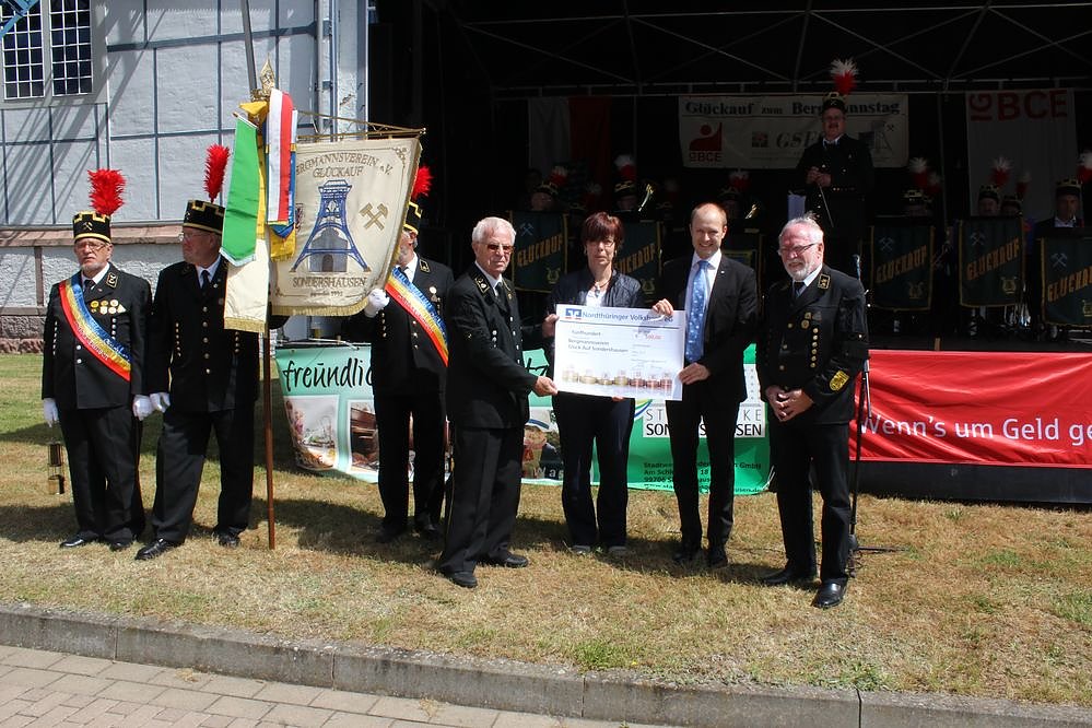 In einer kurzen Ansprache bedankte sich der Vereinsvorsitzende des Bergmannsvereins Sondershausen e.V., Günther Otto, bei den vielen Sponsoren, die dieses Bergmannsfamilienfest unterstützen. Otto bezeichnete diesen Familienbergmannstag zusammen mit dem Barbaratag als die wichtigsten Feiertage für Bergleute und Bergbau-Senioren.