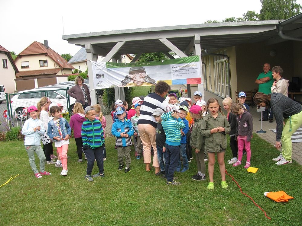 Geübt wurde das richtige Überqueren des Fußgängerüberweges, Spiele zur Sicherheit beim Überschreiten der Straße, aber auch Sackhüpfen und Eierlauf gehörten mit zum Programm.
