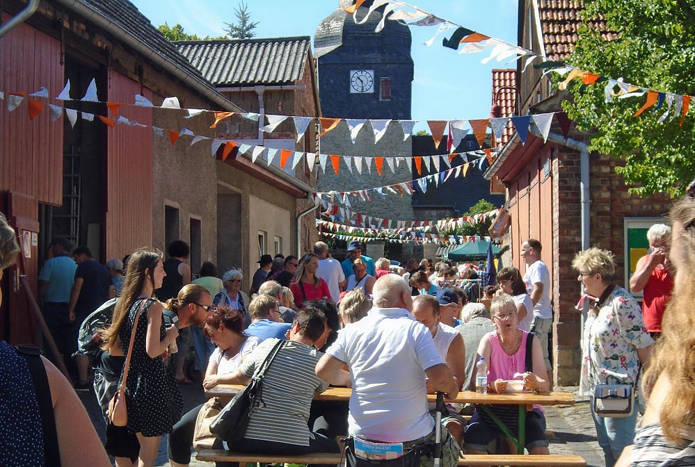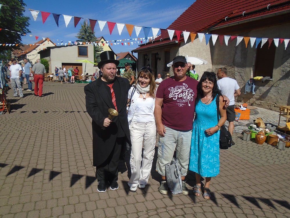 Und noch eine Besonderheit- alle machen mit. Angefangen mit dem Bürgermeister beim Aufbauen der Biertischgarnituren für den Rost des Feuerwehrvereins, dem ehemaligen Gaststättenbetreiber Herr Ruppe, der in seinem wohlverdienten Ruhestand viel mehr zu erzählen als zu verkaufen hatte (hoffentlich ist er nächstes Jahr wieder dabei, irgendetwas muss sich doch noch finden), die Familie Rieser, die sich um die Toiletten kümmert, die Fiebrichs, die ganz Etzleben an einer Wimpelkette auffädelten und vor allem Jana Thielemann mit ihrem planerischen Geschick. Ich kann sie nicht alle nennen, weil ich auch nicht alle kenne.