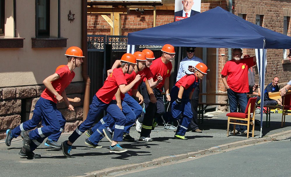 Mit der Vorführung eines Löschangriffs zeigte die Jugendfeuerwehr Jecha ihr Können und gewann den Wettbewerb gegen die Jugendwehr aus Mardorf. In Hessen wird allerdings diese Art des Wettkampfs nicht betrieben und damit nicht soviel Übung wie hiesige Wehren.