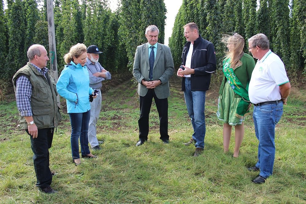 Vor Ort wurden mit der Ministerin dann auch Probleme angesprochen. Nach abernten der zapfenförmigen Früchte bleibt jede Menge Grünzeug übrig. Wohin damit. Wenn man ein Kompostieranlage hat geht das noch. Das Grünzeug einfach Häckseln und auf die Felder ausbringen? Dieses Material wird als Dünger eingestuft und nach Düngemittelverordnung behandelt, mit dem Problem, dass man es nicht sofort ausbringen kann, sondern erst nach die 1. Oktober! Diese Unverständnis der Hopfenanbauer versuchte man im Gespräch der Landwirtschaftsministerin zu vermitteln.