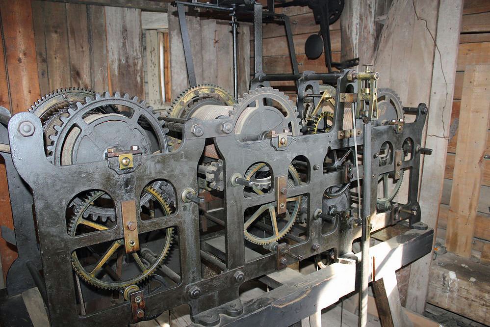 Aber die 210 Stufen reifen, um einen Blick in das Uhrwerk zu werfen. Das muss jeden zweiten Tag aufgezogen werden, da bleibt der "Türmer" gut im Training.