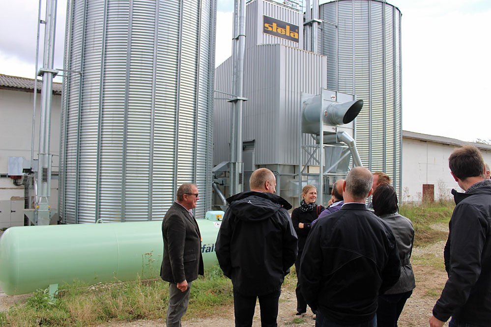 Nach dem Erntegespräch gab es noch ein Gruppenfoto, ehe man sich zur neuen Trockenanlge für Getreide begab.