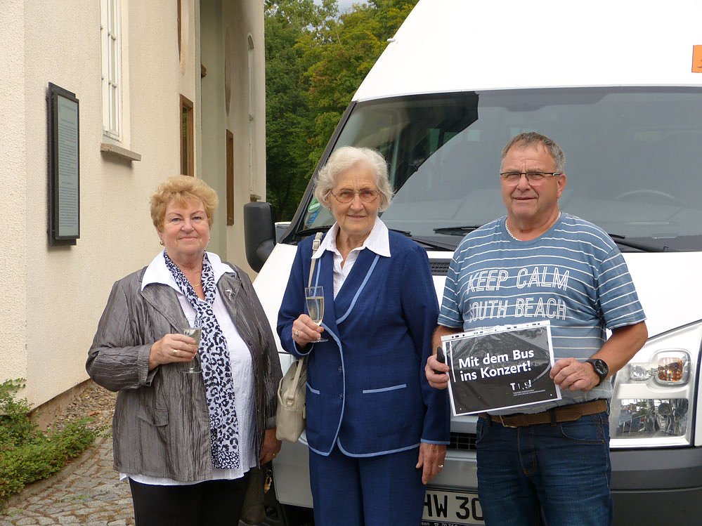Mit einem Glas Sekt wurden die ersten Gäste der Jungfernfahrt am Haus der Kunst begrüßt. Christa Augner und Christel Kosmale waren mit dem Bus aus Greußen gekommen. Und sie waren begeistert: Seit Jahren hatten sie keine Konzerte mehr besucht, das neue Angebot machte es ihnen wieder möglich.