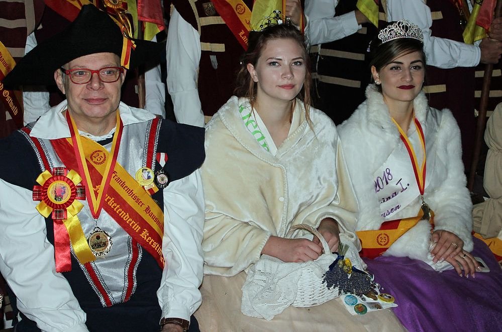 Hahn im Korb war heute Hausmann Andreas, der sich den Platz neben den Hoheiten Riedprinzessin und Fliederkönigin sicherte.