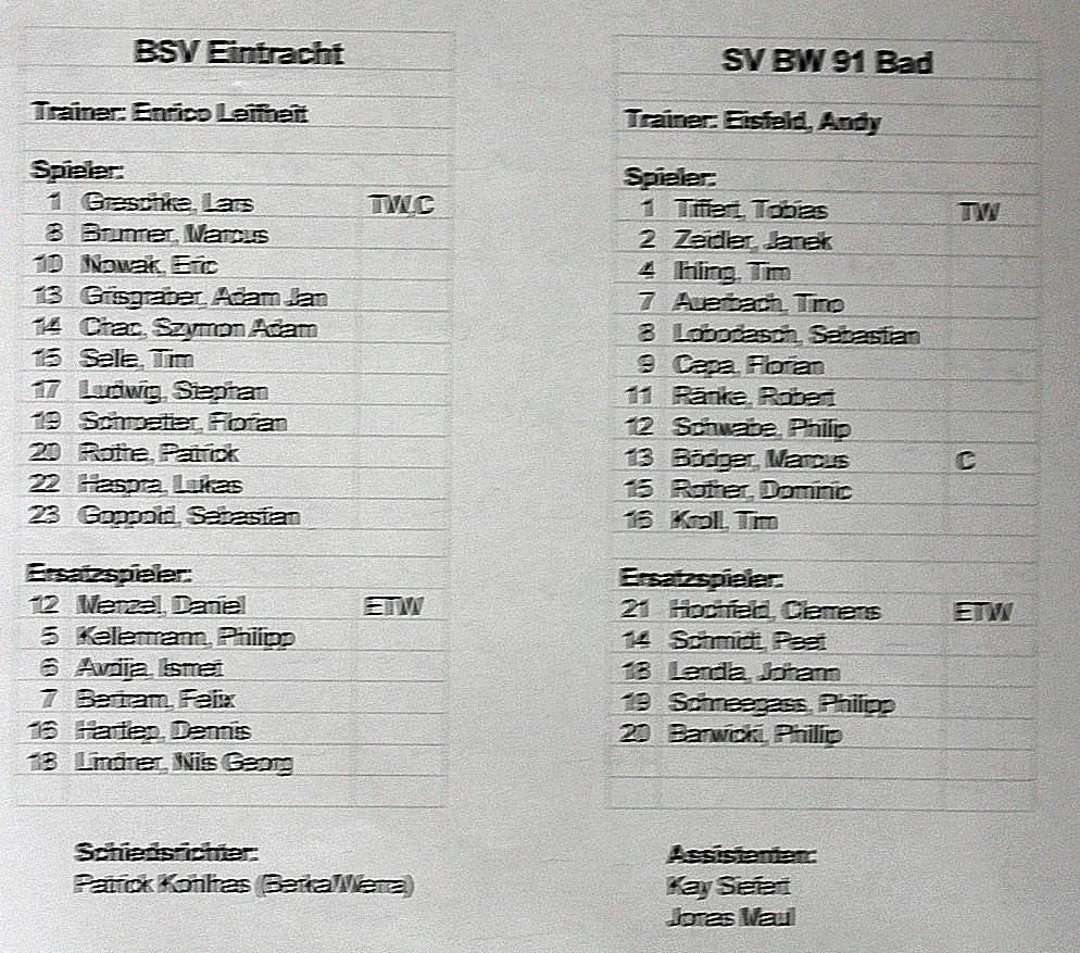 So liefen die Mannschaften auf. In der ersten Hälfte des Spiels bis zur Halbzeit hätte man eher gedacht,die Platzierung wäre anders herum.