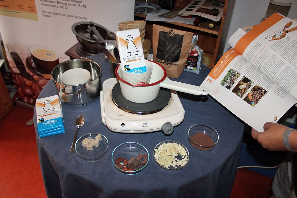 Heute fand ab 16.30 Uhr ein Workshop zu Kakaoanbau und Schokoladenherstellung mit Verkostung statt.