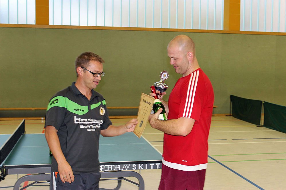 Im Finale trafen die beiden Turnierfavoriten aufeinander. Trotz mächtiger Gegenwehr und tollen Ballwechseln gelang es Martin Kallenberg nicht die Erfolgsserie Gaßmanns zu brechen. Manuel gewann mit 3:1 und konnte seinen Titel aus dem Vorjahr verteidigen. Ein großer Dank gilt den Organisatoren des MTV Greußen für die Bewirtung und Durchführung des Turniers.