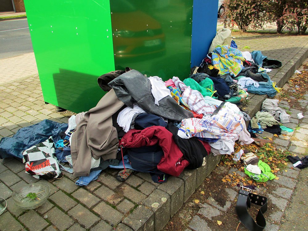 So sieht vor der Kleiderspende am Klubhaus Stocksen aus.