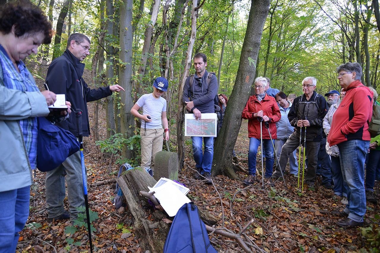 Die 31. Tour Geschichte erleben im Biosphärenreservat führte vom Hüfler bei Kelbra aus in den Kyffhäuserwald in Richtung Tilleda. Hier, am Nordhang des Gebirges, liegt im hohen Buchenwald eine jahrhundertealte Grenze zwischen dem einstigen Fürstentum Schwarzburg-Rudolstadt und dem Königreich Preußen. Heute trennt sie Sachsen-Anhalt und den Freistaat Thüringen.