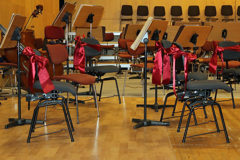 Einge Zuschauer im Haus der Kunst von Sondershausen hatten sich vor Beginn der des Konzerts gefragt, was hat es den mit den roten Schleifen an den Stühlen auf sich? Es gab nämlich auch verschiedenfarbige Stühle im Orchster.