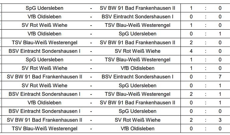 Die weiteren Plätze belegeten Wiehe, Westerengel, Bad Frankenhausen II und Oldisleben.