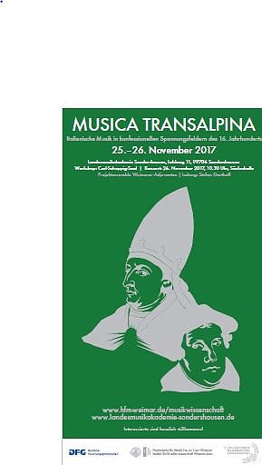 Die Tagung befasst sich mit italienischer Musik in den konfessionellen Spannungsfeldern des 16. Jahrhunderts. Mit der Internationalisierung des Musiktransfers im 16. Jahrhundert avancierte die italienische Musik zu einem Exportschlager. Sie wurde in den Ländern nördlich der Alpen sehr beliebt. Dies betraf nicht nur Importe geistlicher Werke, sondern auch das breite Repertoire weltlicher Vokalformen.