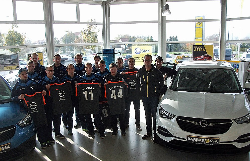Samstag Mittag vor dem Auswärtsspiel trafen sich die Spieler im Autohaus Barbarossa in Bad Frankenhausen und nahmen diese in Empfang (siehe Bild).