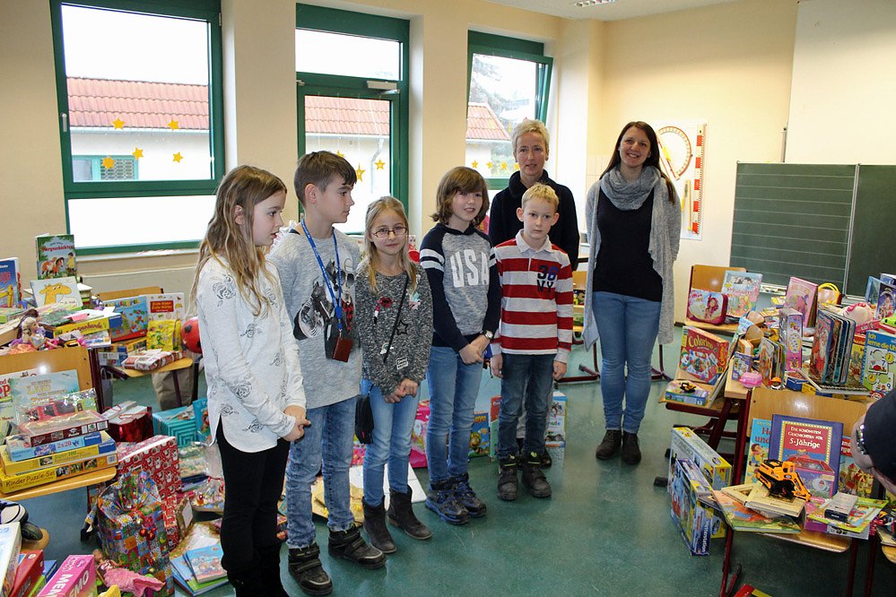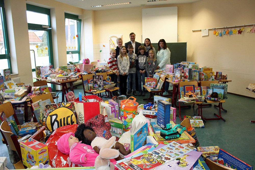 Und was die vielen Schülerinnen und Schüler der Klassen 1 bis 4 der Grundschule da alles zusammengetragen haben, Spielzeug über Spielzeug. Und das ist ja nicht nur in diesem Jahr so. Es ist ja schon zur Tradition an der Schule geworden, dass diese Weihnachtsaktion läuft. Nur war es dieses Jahr fast doppelt so viel wie im vorigen Jahr.