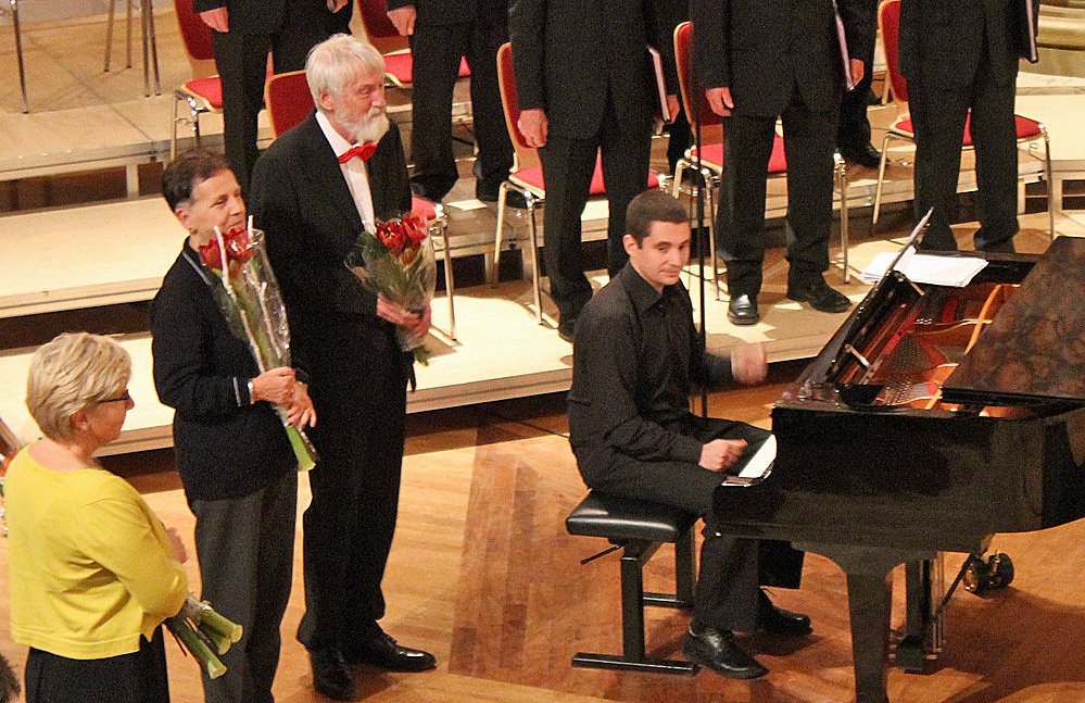 Und so bekamen die Hauptakteure des Abends neben viel Beifall vom Publikum, auch einen Strauß Blumen, stellvertretend für die Chöre. Am Flügel begleitete Nicole Vezure die Chöre.
