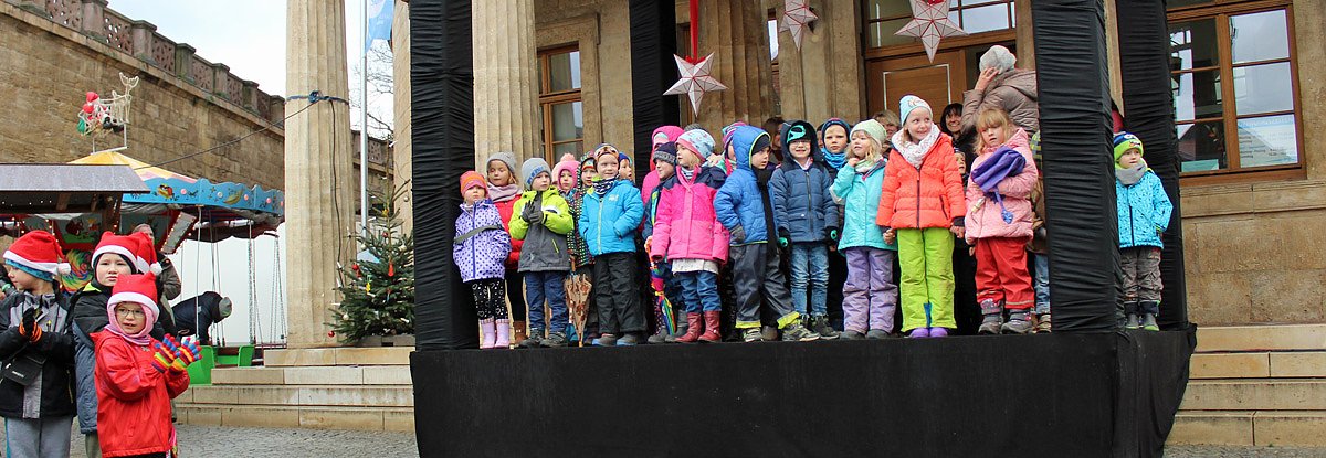 Eröffnet wurde der Weihnachtsmarkt wieder musikalisch. Die Kitas der Stadt Sondershausen gaben ein kleines Weihnachtskonzert für die ersten Besucher des Weihnachtsmarkts, der ab 10:00 Uhr geöffnet hatte.