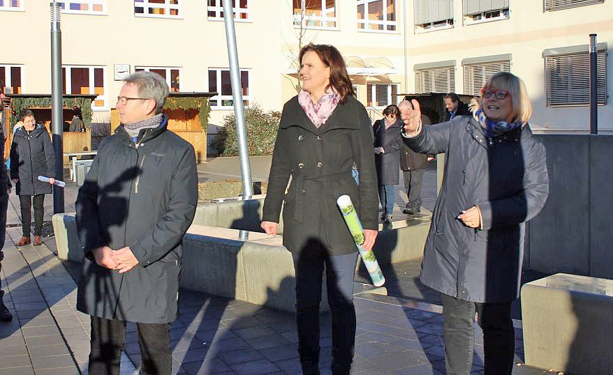 Hier erläutert Schulleiterin Heike Wilke (re.), Landrätin (Antje Hochwind (SPD) und Bundestagsmitglied Kersten Steinke (Die Linke), was allein im Außenbereich entstanden ist, vom Basketball, über das in den Pausen fast immer besetzte Klettergerüst, bis hin zum offenen Klassenzimmer (wo man stand, nur ohne Sonnensegel).