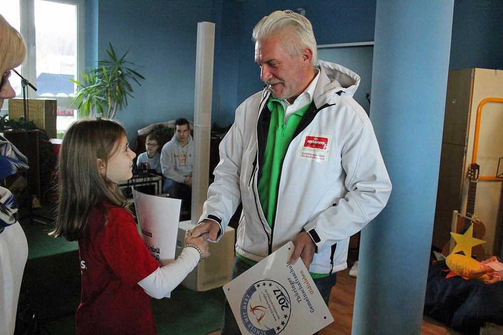 Lutz Schulz hatte als Dank eine Auszeichnung im Gepäck. Die TGS Oldisleben wurde Schule mit Herz und erhielt die entsprechende Plakette.