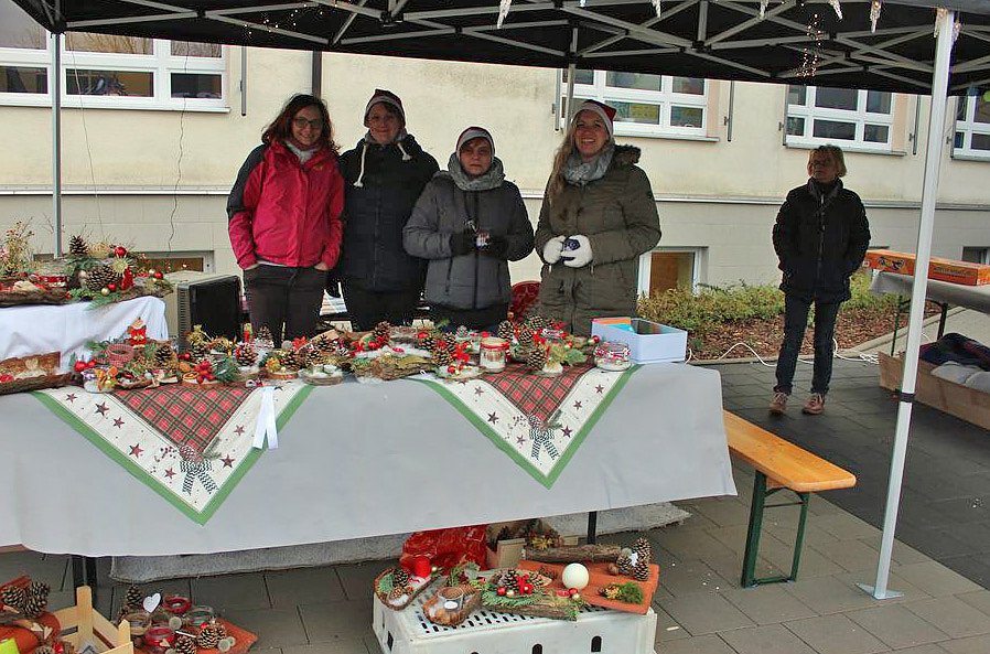 Während drinnen noch gefeiert wurde, haben fleißige Eltern draußen bereits im großen Schulhof einen kleinen Weihnachtsmarkt hergerichtet und im Warmen hatte man bereits einen Kuchenbasar hergerichtet.