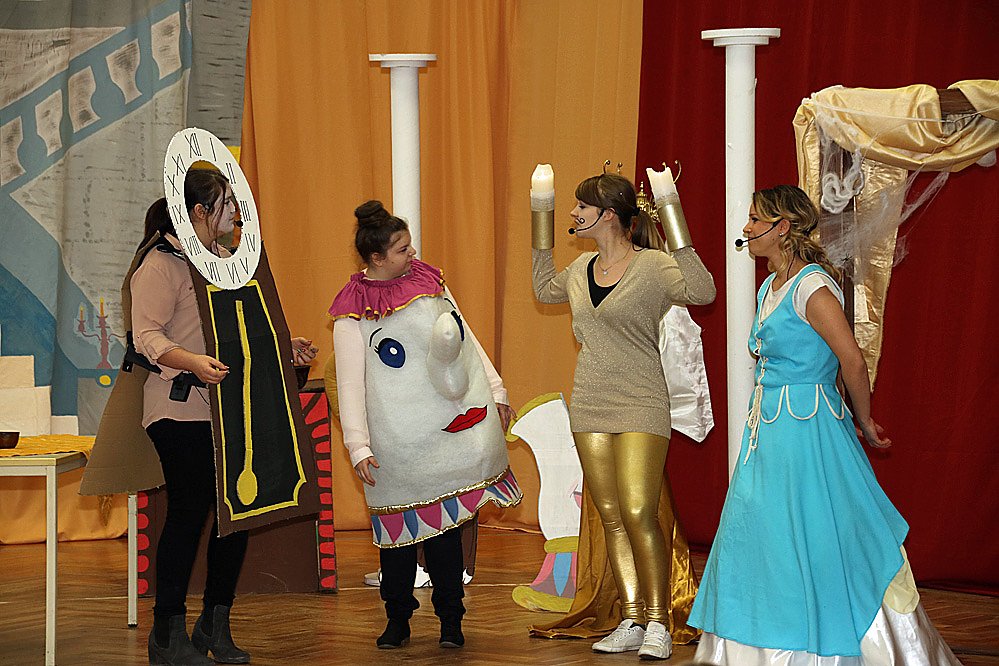 Die Erzieher des ersten Ausbildungsjahres führten das traditionelle Weihnachtsmärchen auf und luden die Kinder der umliegenden Kindertagesstätten und Grundschulen ein, gemeinsam Die Schöne und das Biest zu erleben.