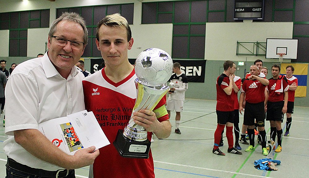 Aus der Hand von Anlagenwart des BSV Wolfgang Maresch und Sponsor des Turniers Veit Lerdon vom Autohaus Leerdon nahm Felix Ruthe von SpG Rottleben/Göllingen entgegen. Ein Gerant dafür, dass seine Mannschaft ins Finale einzog.