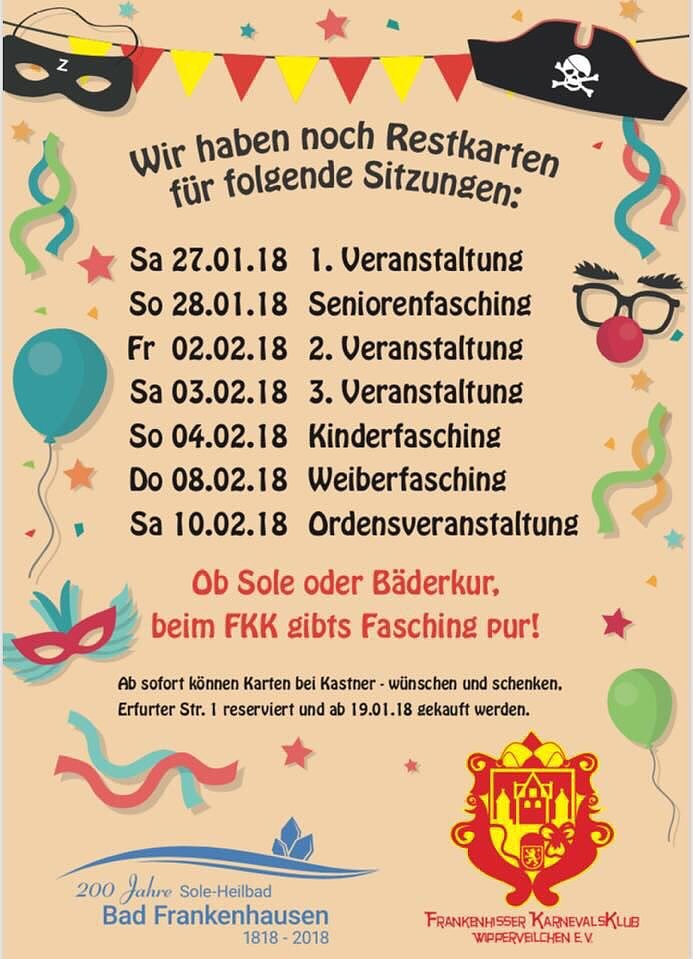 Für die Veranstaltungen des FKK Wipperveilchen Bad Frankenhausen gibt es noch Karten: