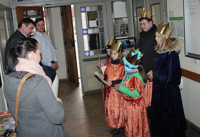 Zuerst ging es ins Landratsamt des Kyffhäuserkreises. Hier empfing Landrätin Antje Hochwind (SPD) die Sternensinger. Nach der Segnung ging es gleich neben an in das Gebäude vom Schwan.