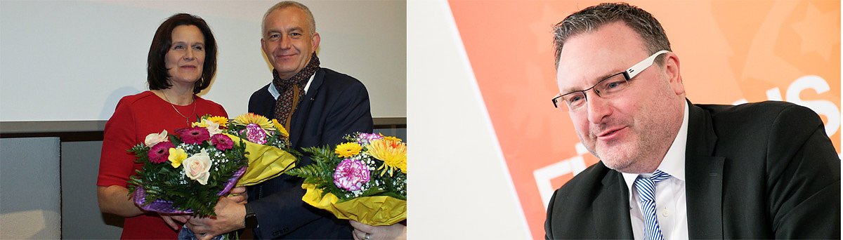 Antje Hochwind nach der Wahl zur Kandidatin und Jens Krautwurst bei seiner Rede in Bad Frankenhausen.