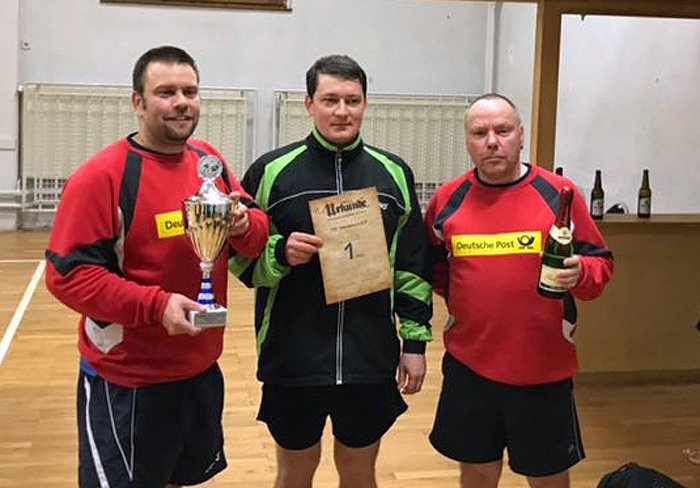 Siegerfoto (Gewinner TTC Oberbösa 2 ) Rene Engel, Florian Bochmann, Michael Kirchner