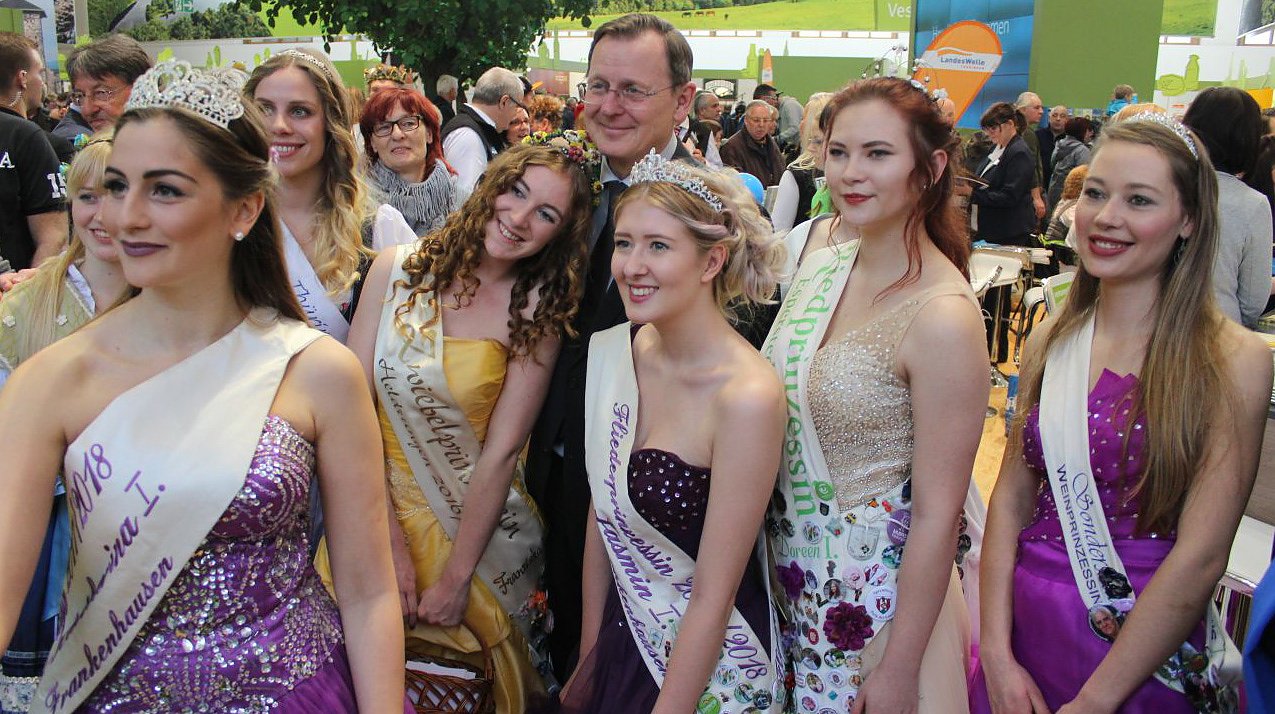 Hahn im Korb war der MP im Kreise der Hoheiten des Kyffhäuserkreises. Die Fliederkönigin hatte zum Selfie und die Hoheiten kamen, so die Arterner Salzprinzessin, die Riedprinzessin aus Esperstedt, Weinprinzessin aus Sondershausen und die Fliederprinzessin aus Bad Frankenhausen.