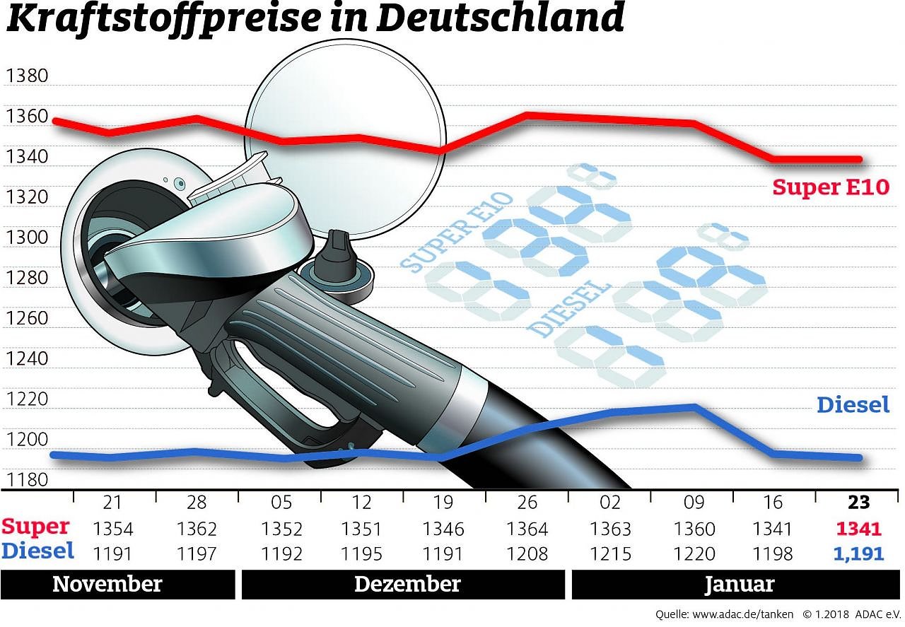 Auskunft über die aktuellen Spritpreise an den deutschen Tankstellen gibt die Smartphone-App ADAC Spritpreise. Ausführliche Informationen gibt es zudem unter www.adac.de/tanken