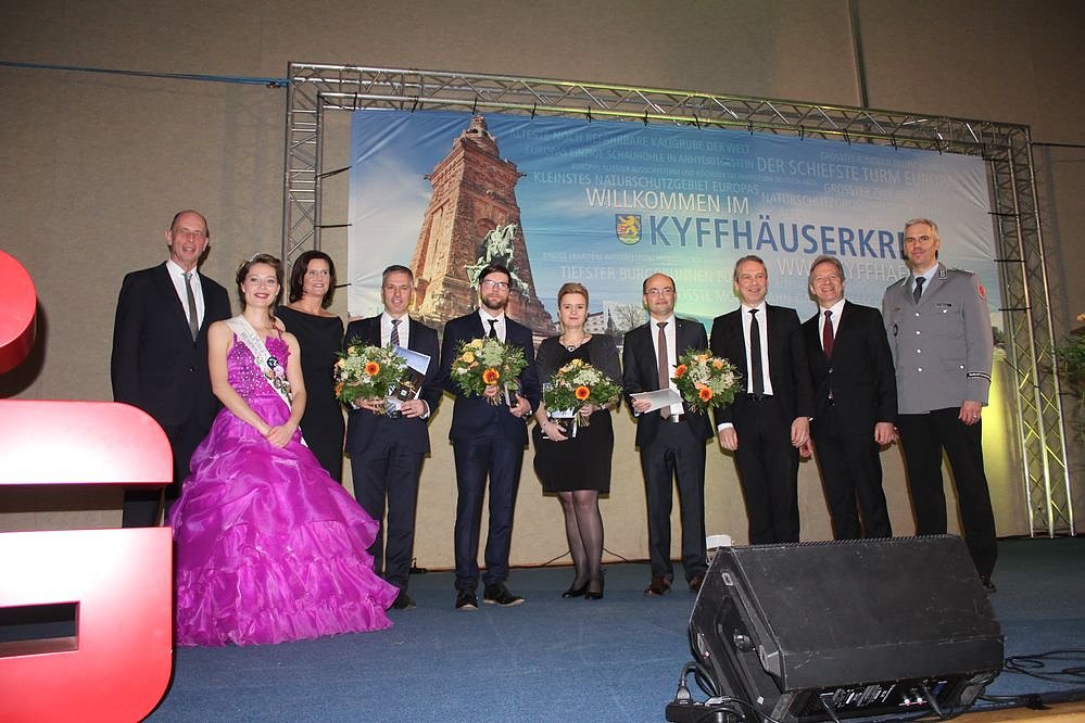 So war es auch wieder in diesesm Jahr. Die Thüringer Minister Innenminister Georg Maier (SPD) und Wirtschaftsminister Wolfgang Tiefensee (SPD) nahmen zusammen mit Landrätin Antje Hochwind (SPD), der Standortälteste Oberstleutnant Ulrich Rölle und der Vorstandsvorsitzende der Kyffhäusersparkasse, Markus Biere und der Weinprinzessin von Sondershausen die Ehrung vor.