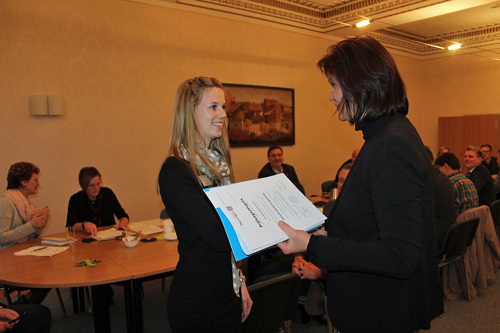 Autor: khhDie Landrätin konnte der Auszubildenden Eileen Seidel vorfristig ihren Berufsabschluss überreichen.
