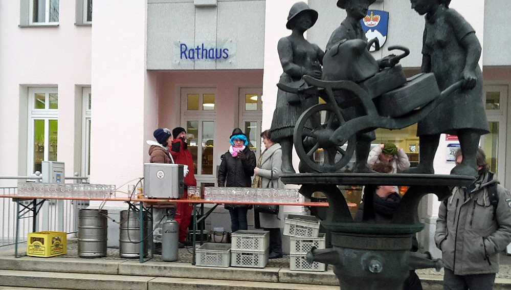 Und es wurde Freibier versprochen und der Bürgermeister hielt sein Versprechen. Hier die Vorbereitungen, bevor der Ansturm begann.