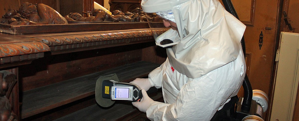 Das ist die Aufgabe von Dr. Boat Paz und seinem Team von den Paz Laboratorien für Archäometrie! Die Möbel und deren Oberflächen werden mit Spezialpumpen und angeschlossenen Filtern untersucht. Dabei wird nach Chlor als Indikator für die eingesetzten Schadstoffe gesucht. Die Holzschutzmittel basierten hauptsächlich auf der Basis von Chlorverbindungen.