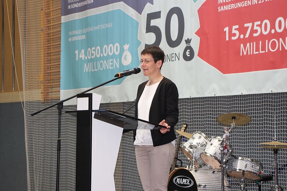 Die stellvertretende Schulleiterin Silvia Thiele hatte die Begrüßung übernommen. Die vielen Ehrengäste aus Politik und Wirtschaft war lang. Auch zahlreiche Schulleiter der Region waren anwesend, wie Kreistagsmitglieder und Stadträte von Bad Frankenhausen.