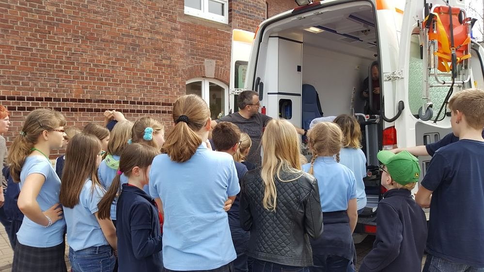 Fast 30 Kinder der Klassen 1 bis 6 ließen sich diese Chance nicht entgehen und löcherten Sebastian Olsen vom DRK Kyffhäuserkreisverband e.V. fast 2 Stunden mit vielen Fragen…