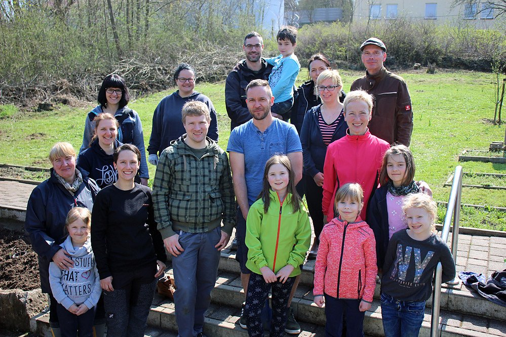 Aber nicht nur um den Teich ging es. Ein Teil der Eltern kümmerte sich um den Schulgarten. Da wurde schon mal umgegraben und die große Hecke verschnitten.