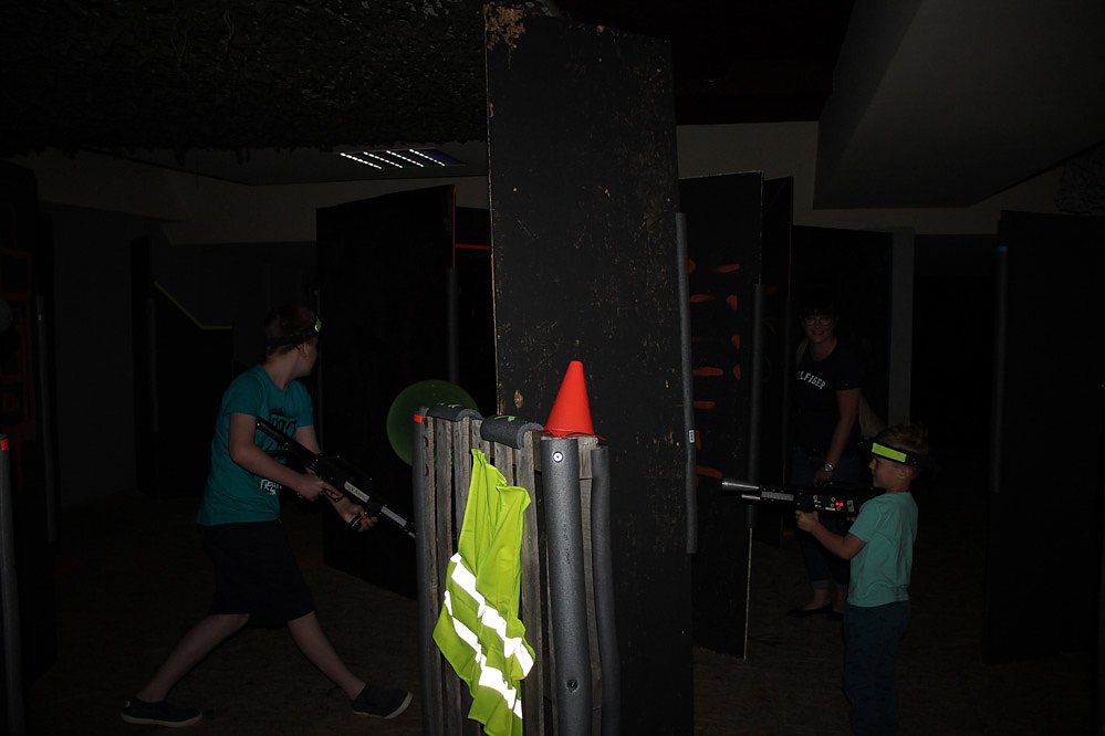 LaserTag? Was ist das denn? Es ist ein Spiel mit einem Laser-Spielgerät, bei dem zwei oder mehrere Spieler versuchen, verschiedene Aufgaben auf einem speziellen Parcours oder wie hier in Sondershausen in einem kleinen Labyrinth von Räumen zu erfüllen.
