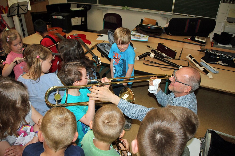 Welches Instrument passt zu mir? Dieser Frage gingen heute Schülerinnen und Schüler der ersten Klassen der Grundschule Franzberg nach. Was da passierte hatte sich kn angeschaut...